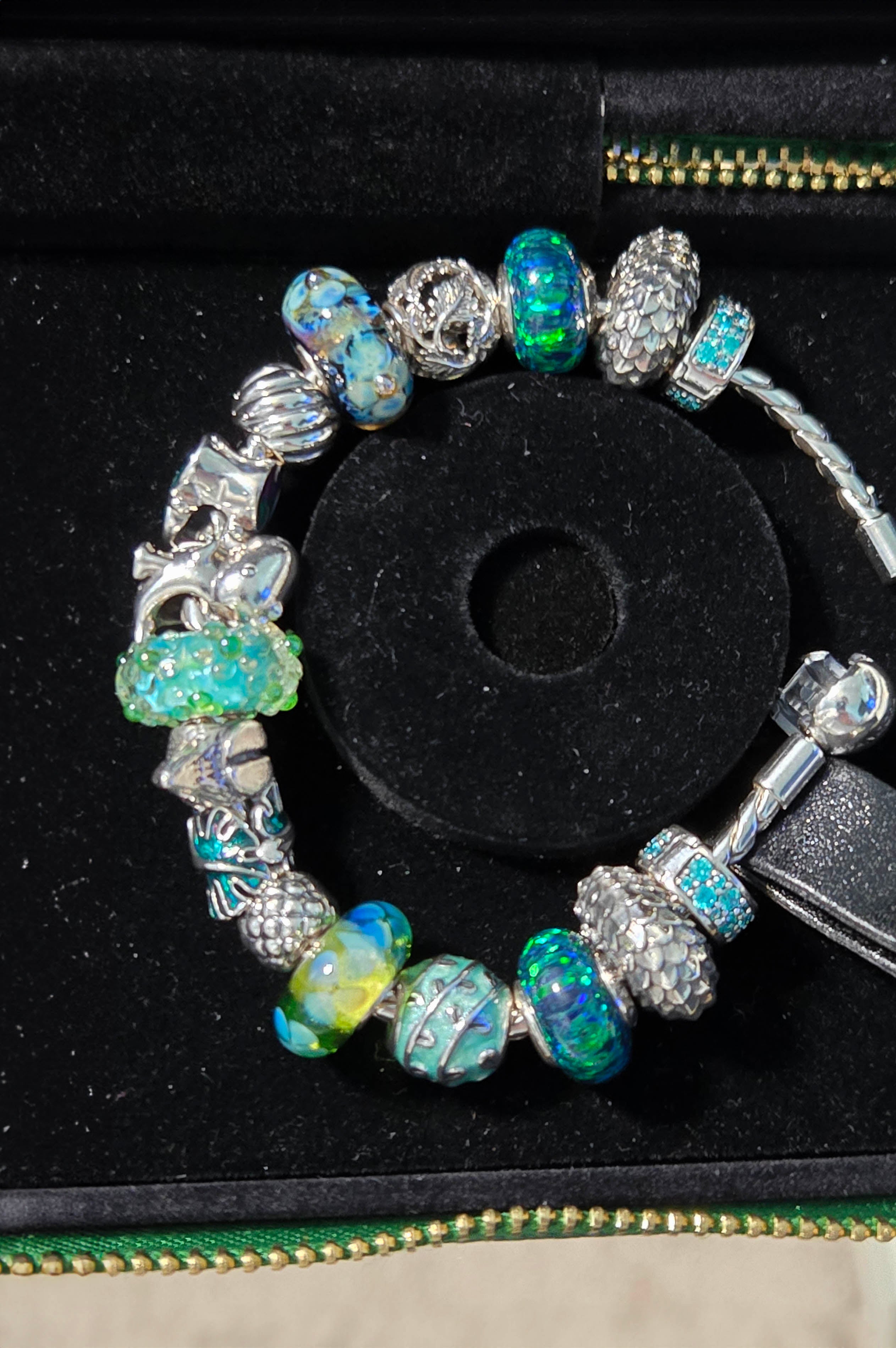I also have other bracelets that hold deep meaning for me, including an ocean-themed one and a memorial bracelet for my nearly 18-year-old poodle, Romeo. Collecting allows me to carry memories, love, and loss with me every day.